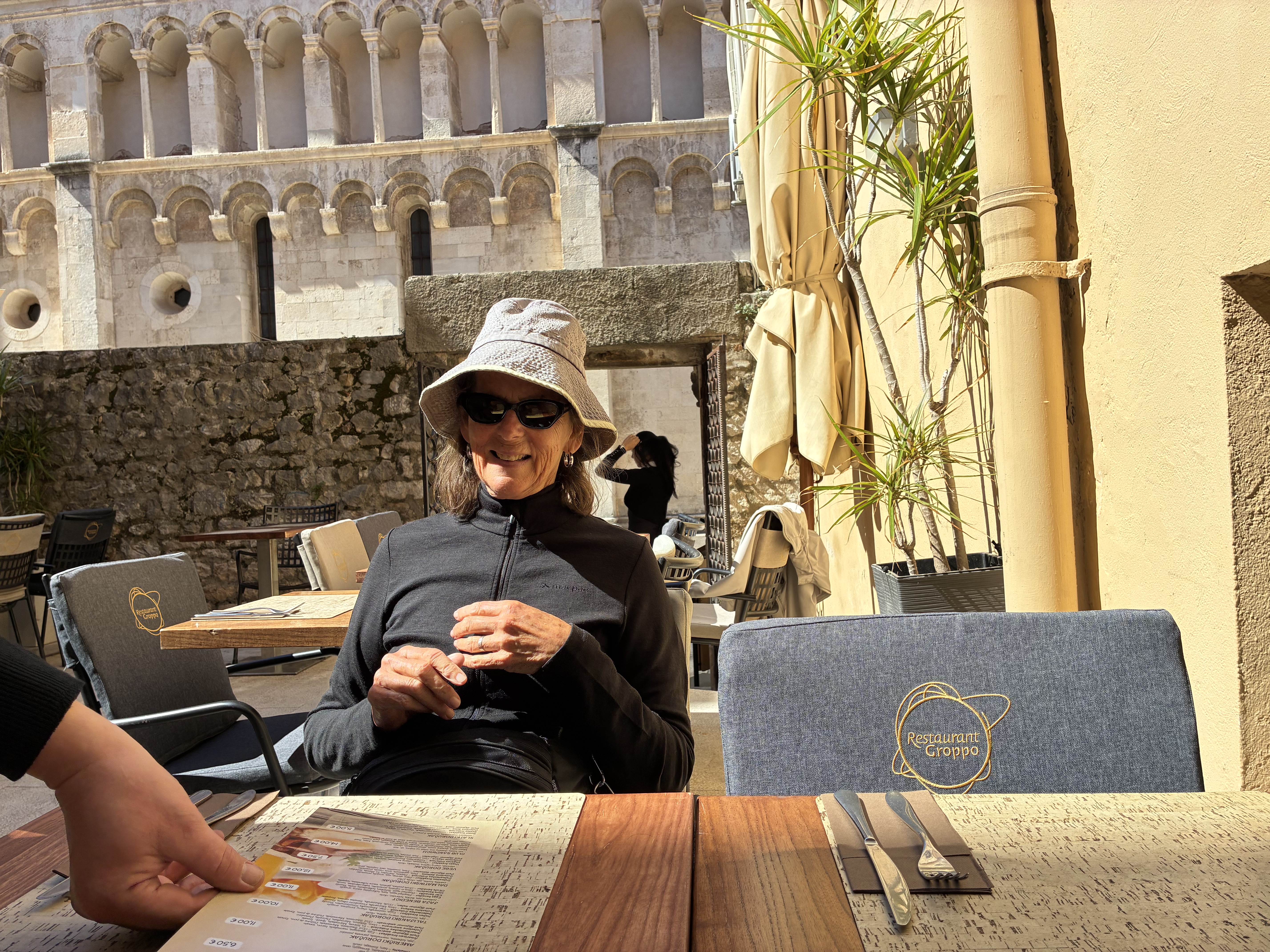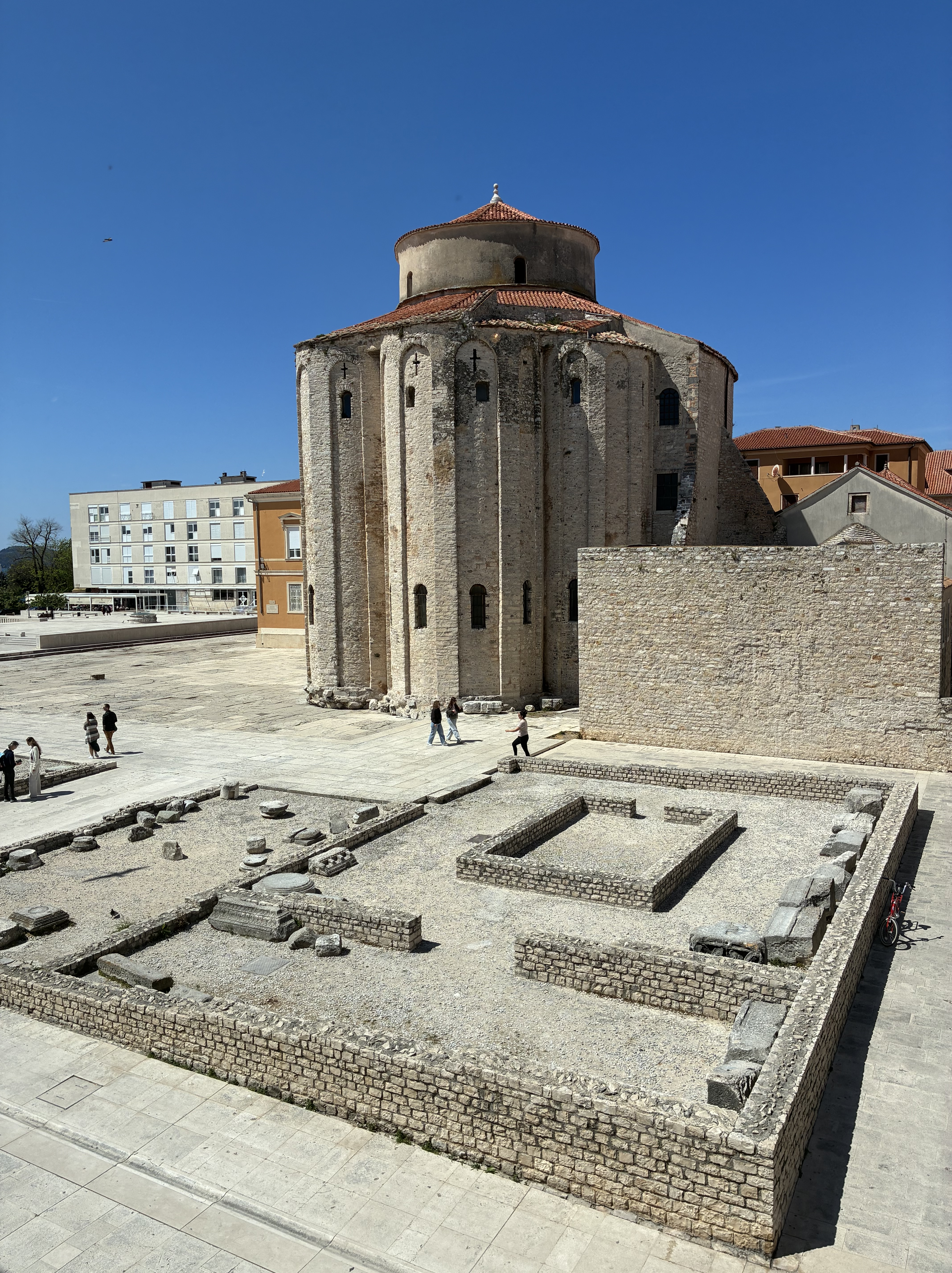 Afterwards, we had a fascinating talk with the young lady at the entry, initially about the church then about the war in the 1990s. She was very animated: her father had been involved, and family property damaged, including her grandmother’s house, destroying all memories. She said her grandmother had died before she was born, but as there were no photos left, she had no idea what she looked like. She mentioned that Zadar had been hit hard and there was lingering resentment – as we parted company, D& T wondering whether there was any truth about her optimism that ‘things are ok now, with the young people’ in the Balkans.