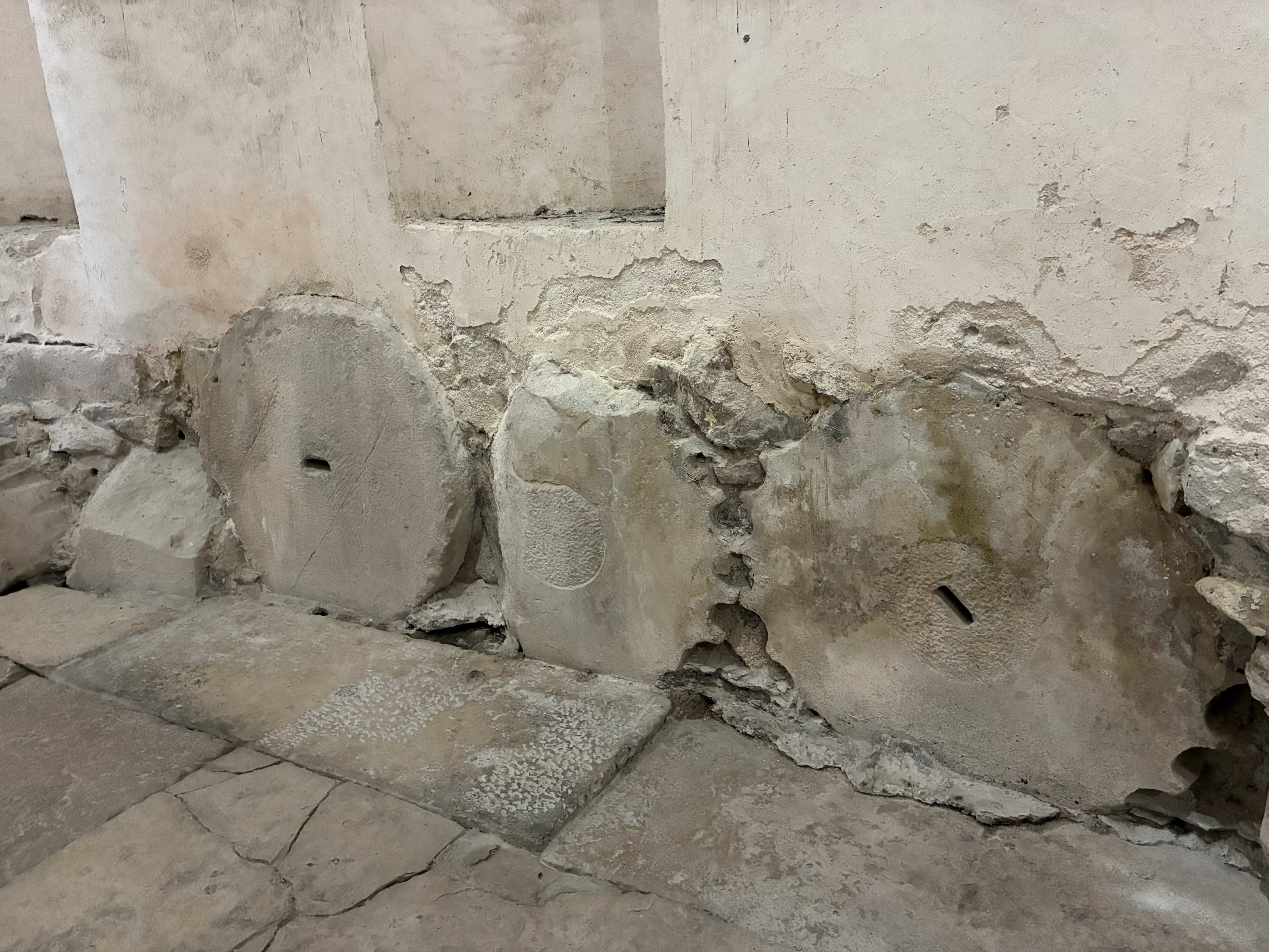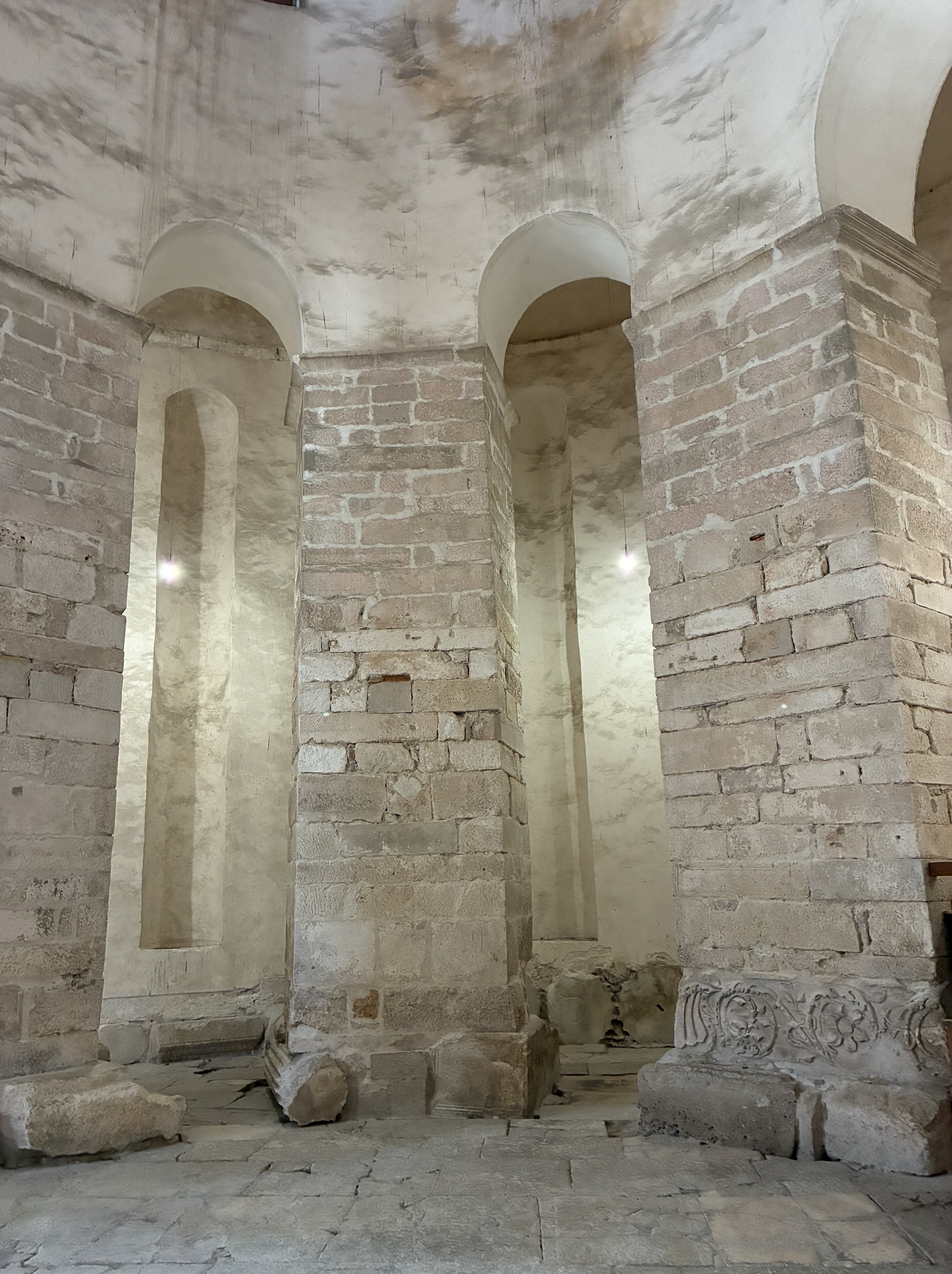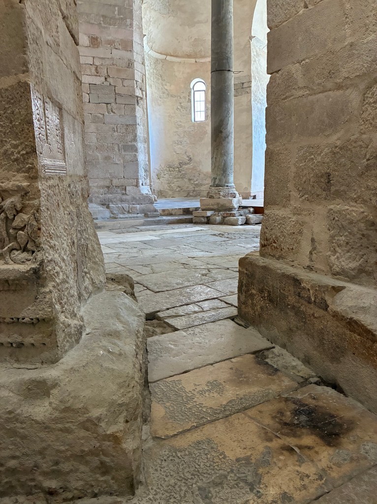 The church was built in 9th century on the old Roman forum, ceased being a church at the end of 18th century and was stripped of altars, fittings and religious paraphernalia…and during archaeological work, the floor has been removed to reveal the Roman foundations. It was marvellous to be in ‘a church stripped bare’.