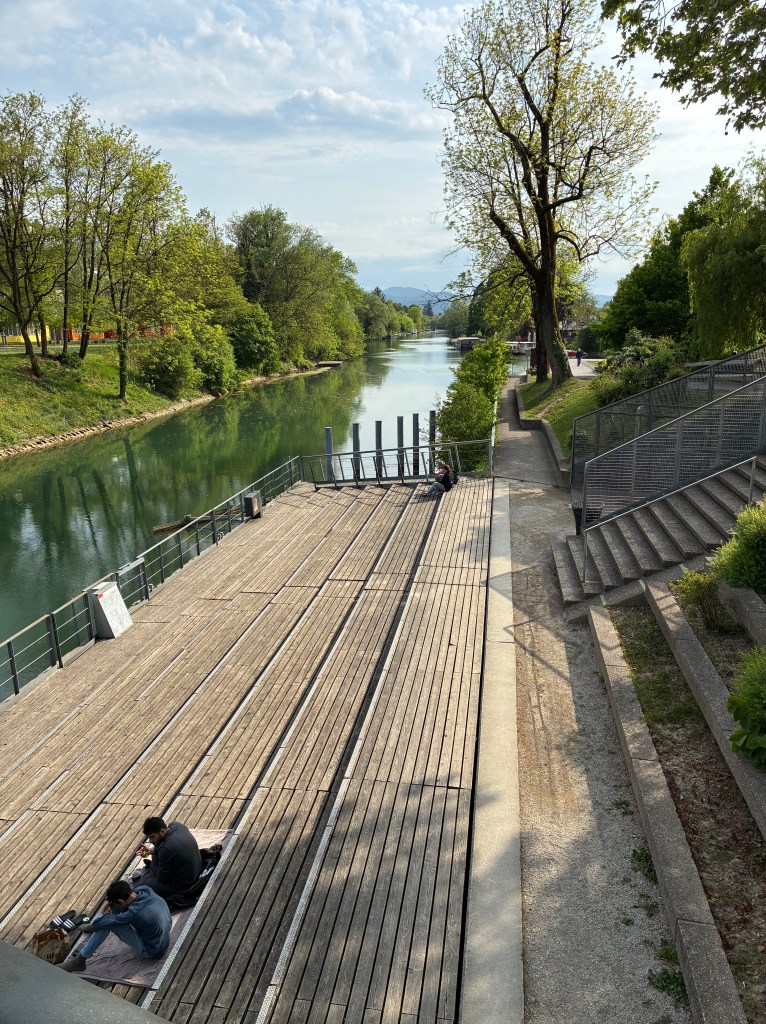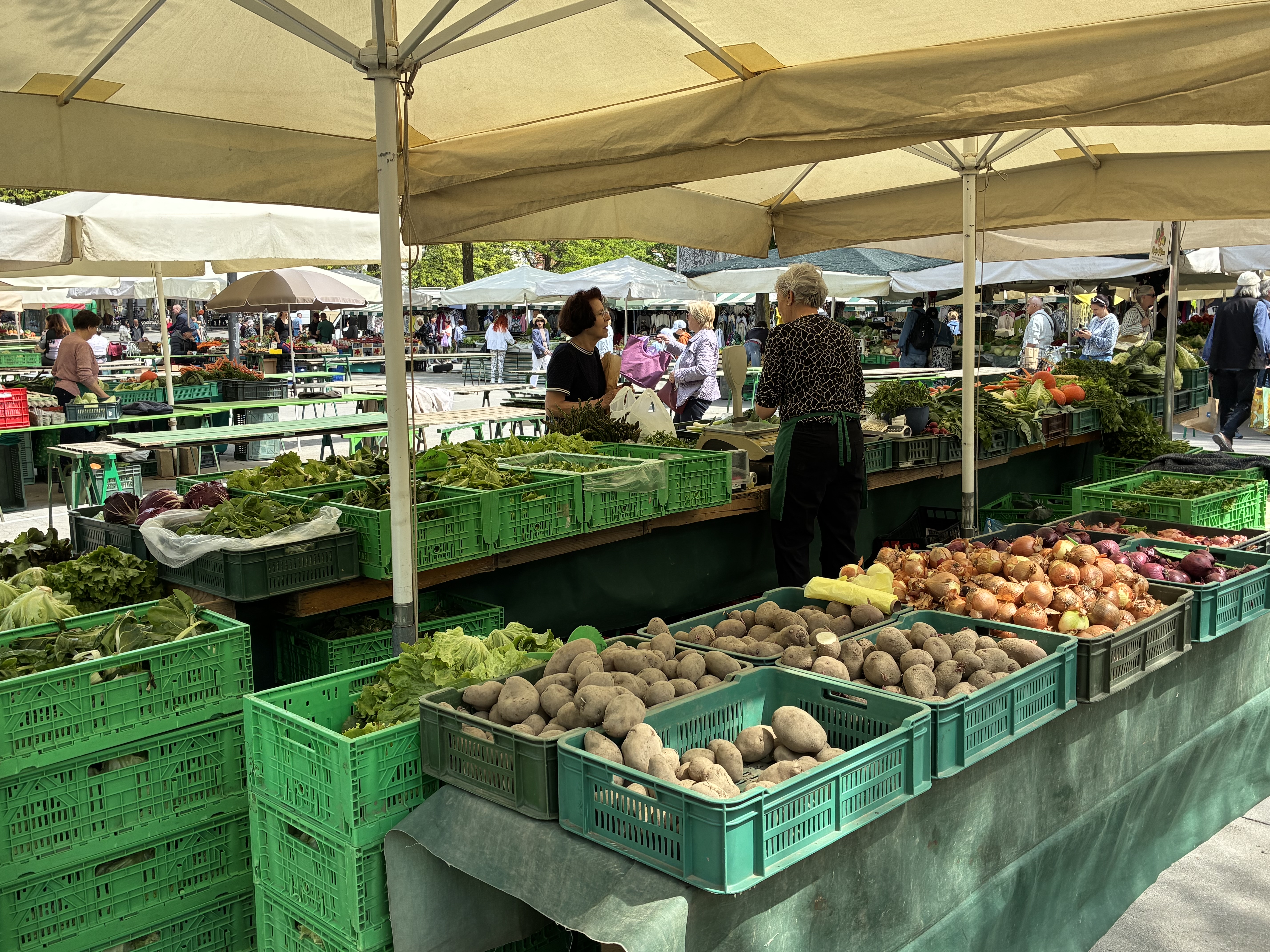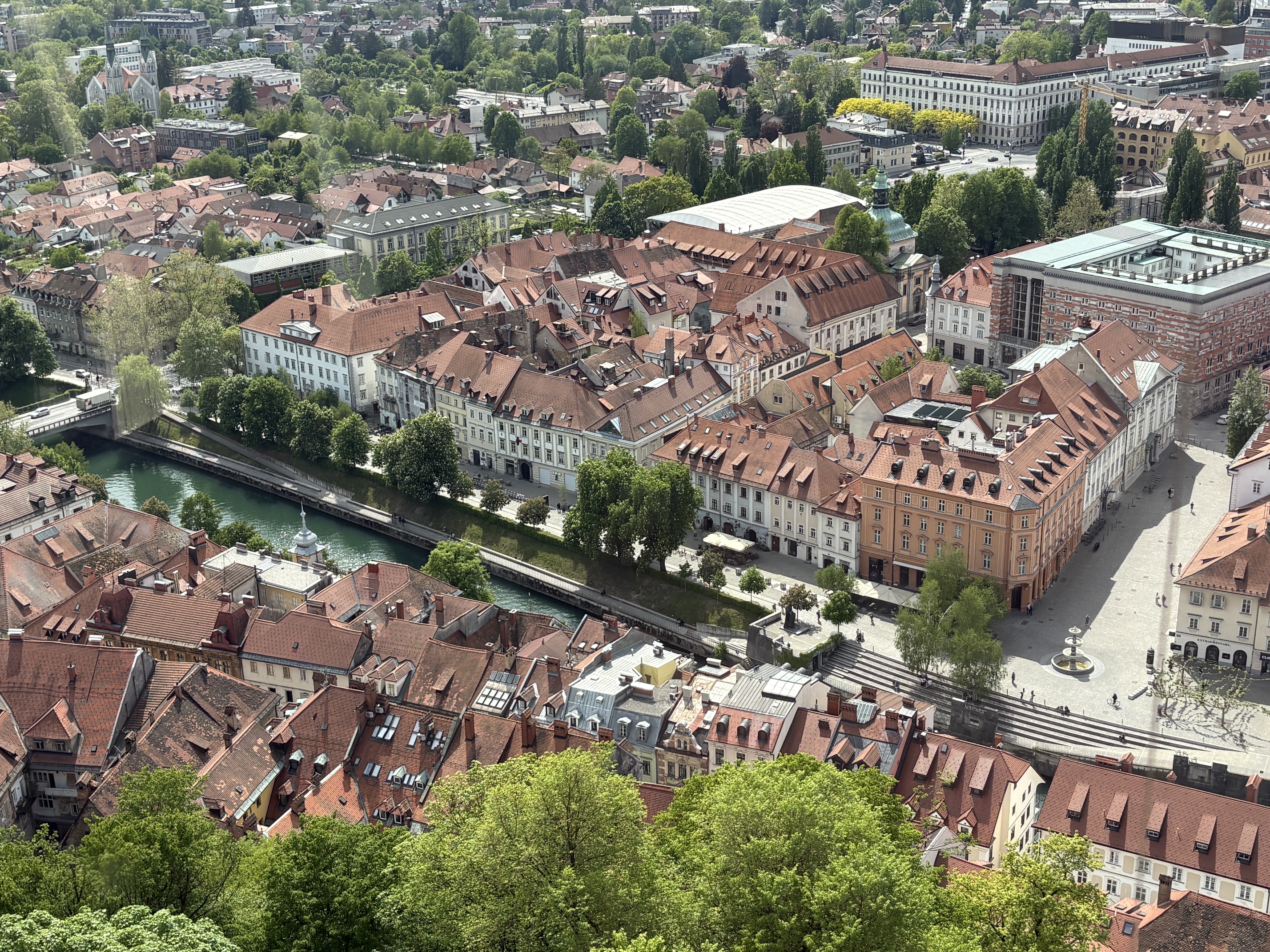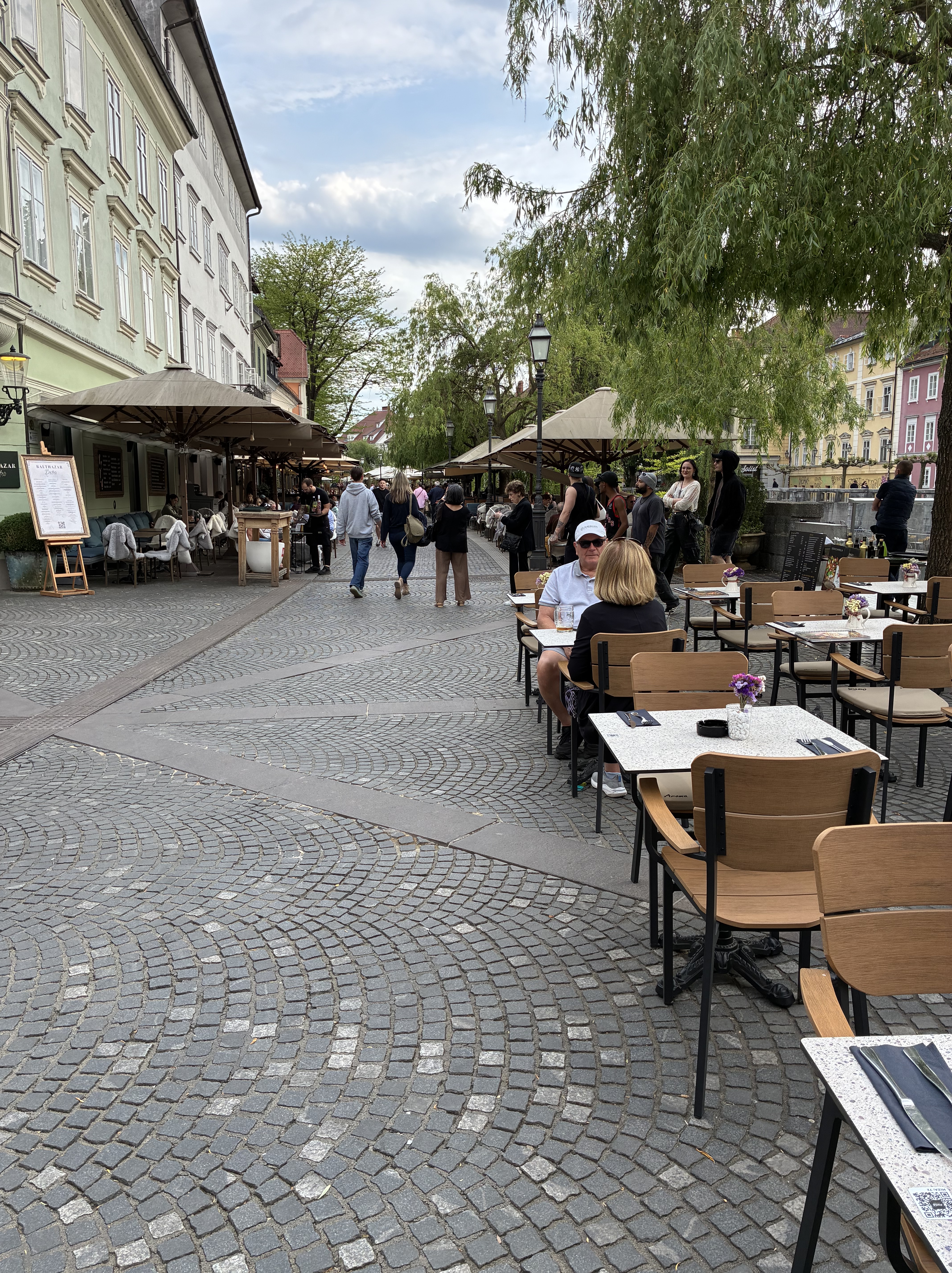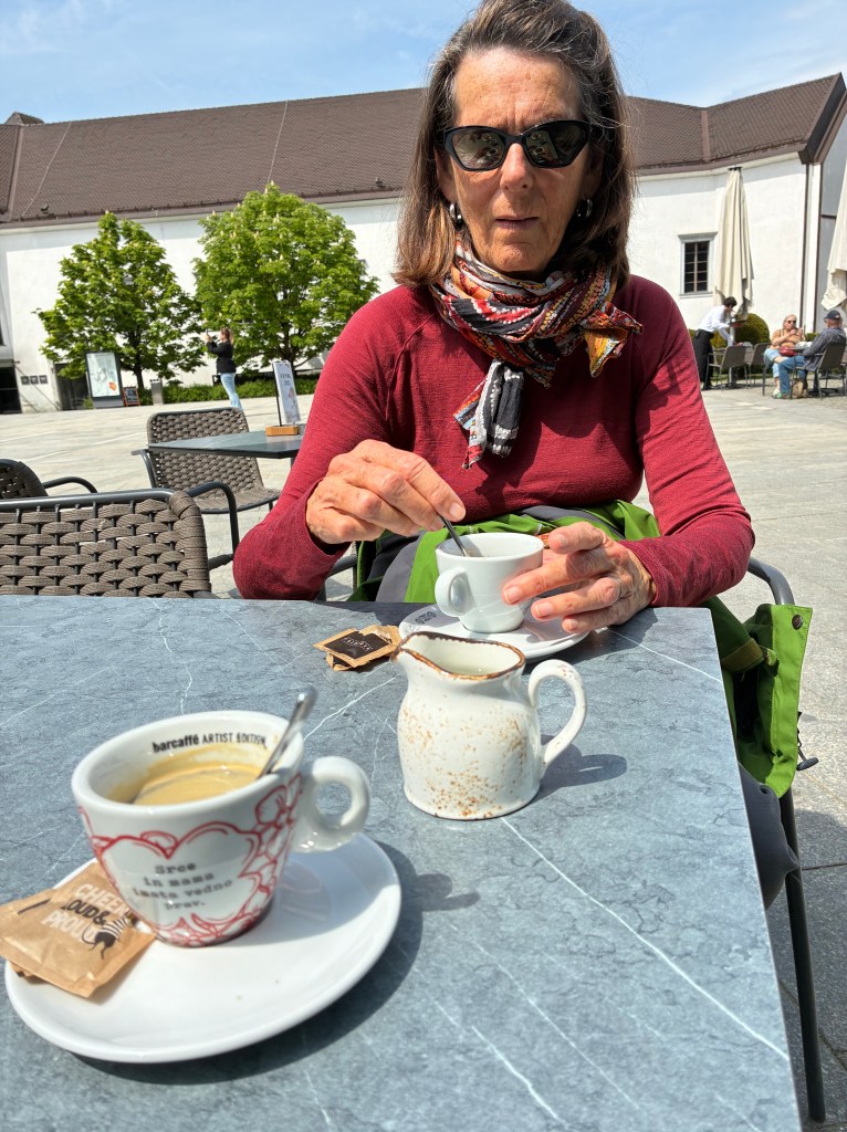 With main breakfast supplies of bread, milk, yogurt, banana we were set up for the day. Spent some screen time wondering about car rental versus bus travel and the next accommodation. The ease of bus is inviting and from Ljubljana day trips are do-able but there’s something about the prospect of getting quieter accommodation, for which you need a car. T is particularly conscious of others above (water running, furniture scraping, feet…). Booking made for Jesenice, a town in the Bled area, accessible by bus and maybe train. From there we’ll hit the big spots of Bled & Bohinj and take the scenic Bohinj rail trip through the Soca Valley( return)…lots of tunnels.