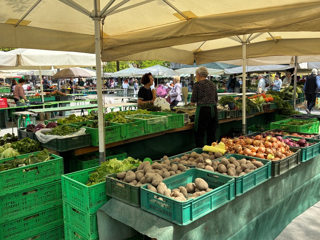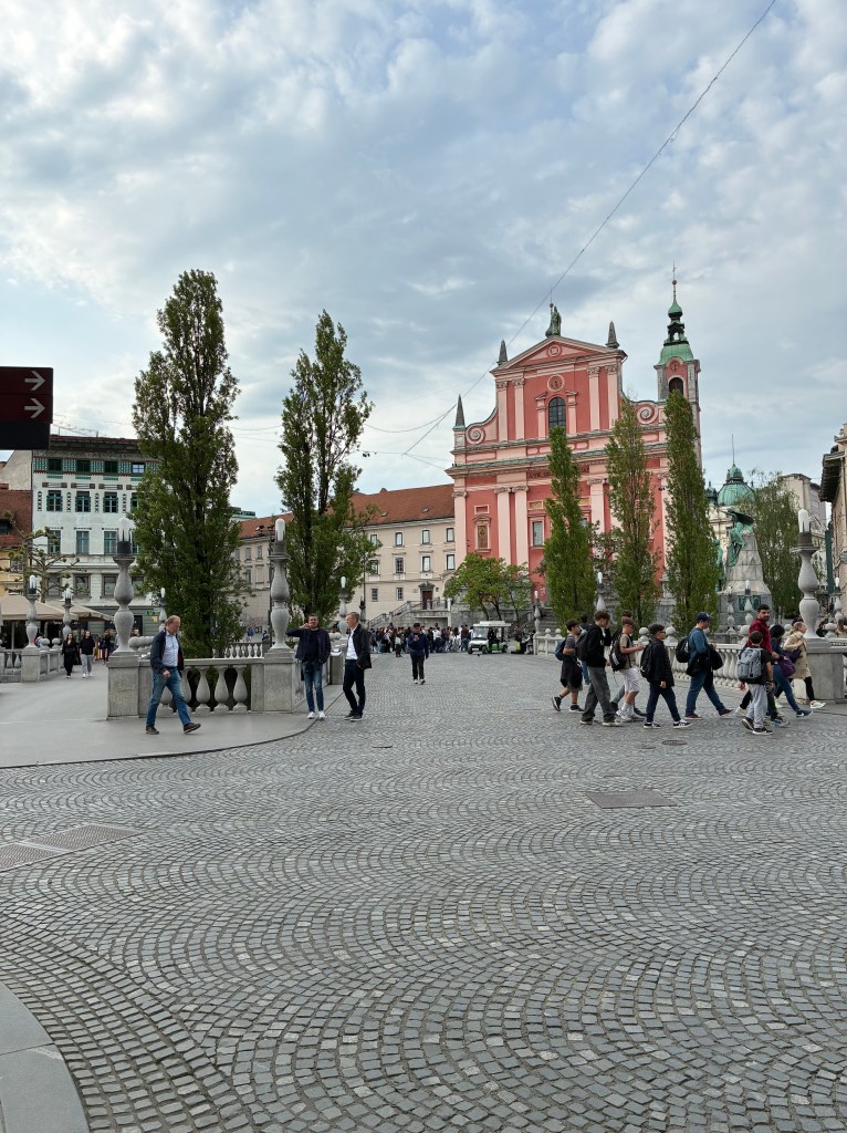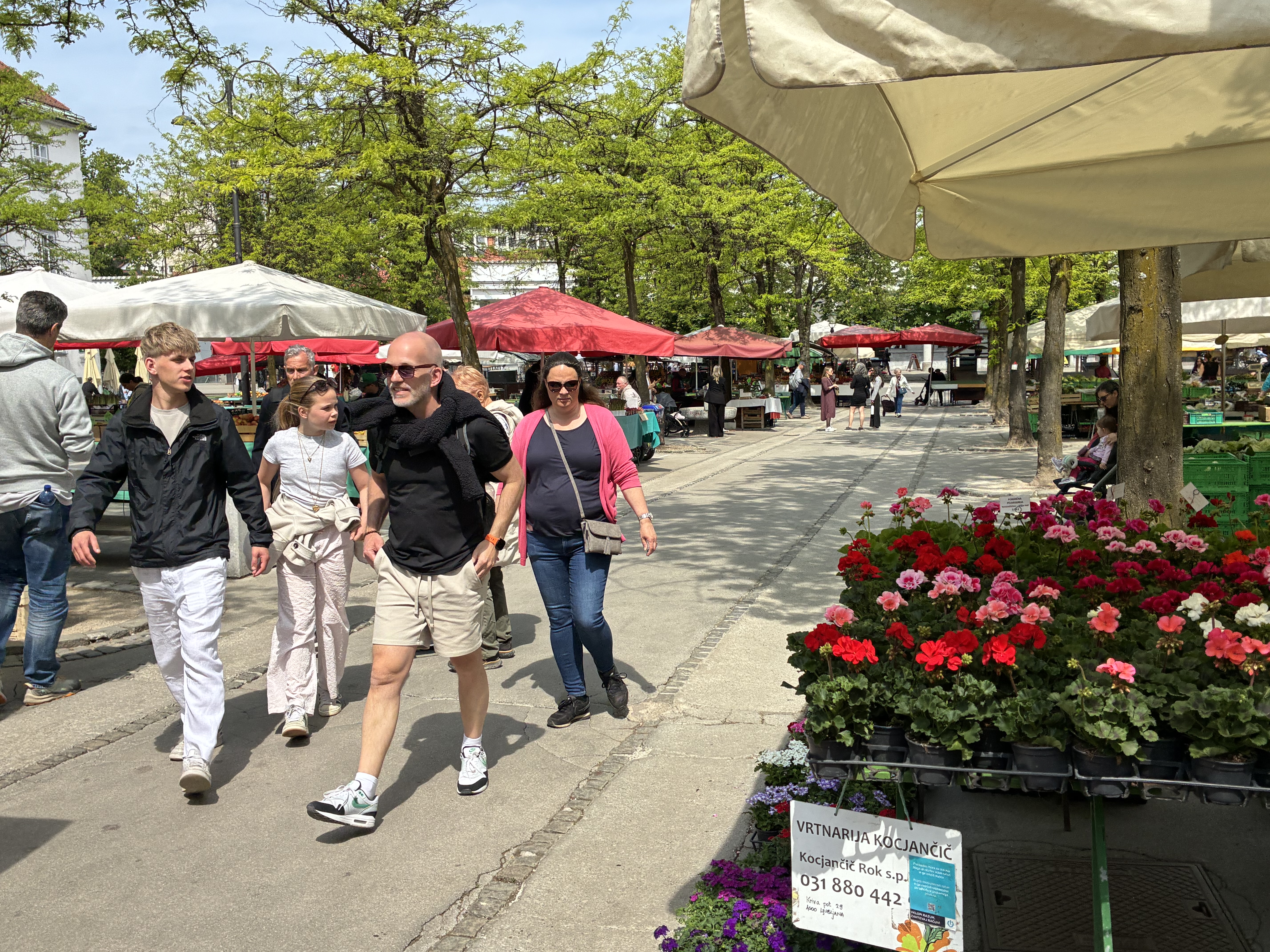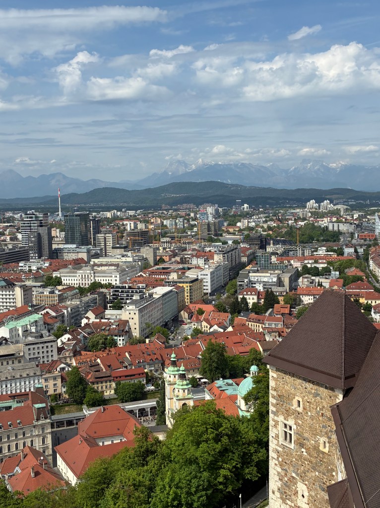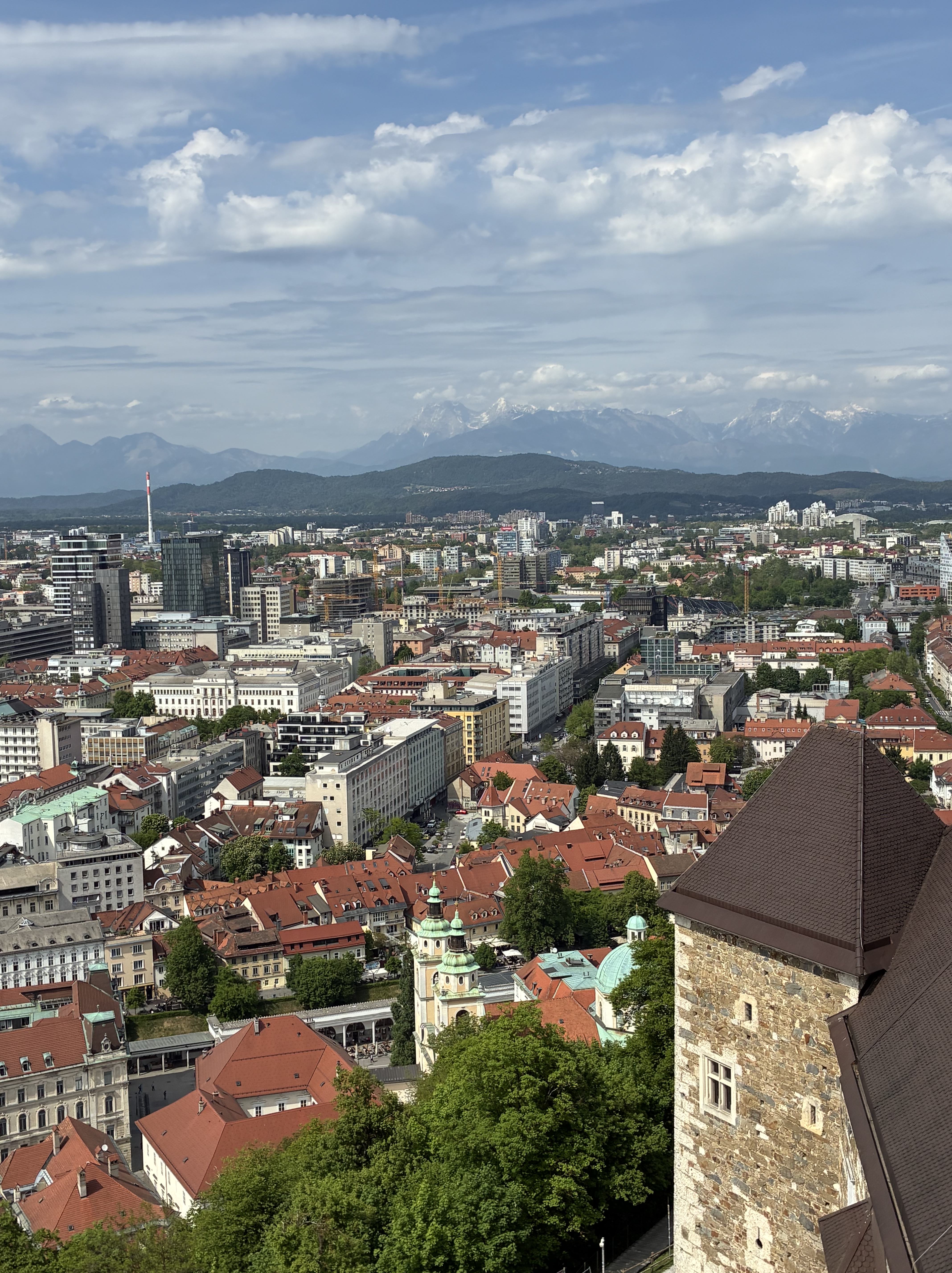 With main breakfast supplies of bread, milk, yogurt, banana we were set up for the day. Spent some screen time wondering about car rental versus bus travel and the next accommodation. The ease of bus is inviting and from Ljubljana day trips are do-able but there’s something about the prospect of getting quieter accommodation, for which you need a car. T is particularly conscious of others above (water running, furniture scraping, feet…). Booking made for Jesenice, a town in the Bled area, accessible by bus and maybe train. From there we’ll hit the big spots of Bled & Bohinj and take the scenic Bohinj rail trip through the Soca Valley( return)…lots of tunnels.