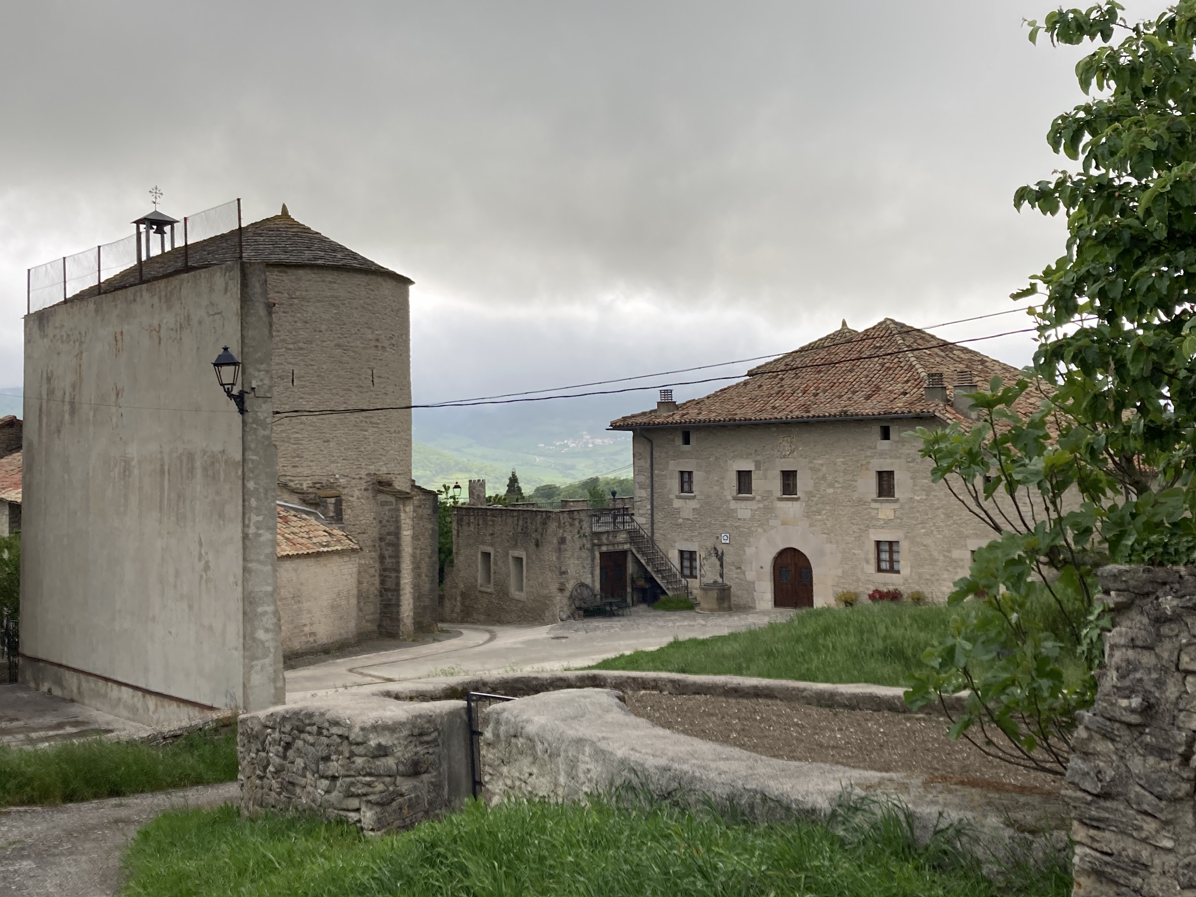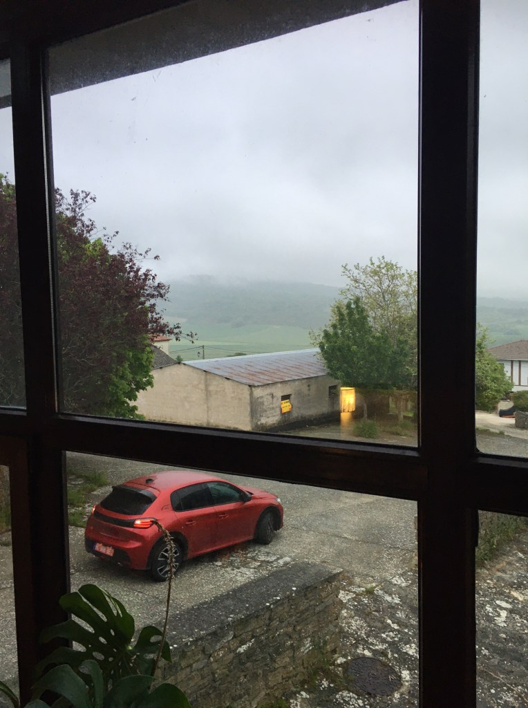 Day started with a car check…yes, she started first press! D told Doris that we want the route to the Peugeot shop in Pamplona provided by the Peugeot breakdown team. We’ll see what she delivers. It had turned cold & damp overnight in the Azanza hills, so coats on.